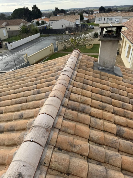 Changement complet de faîtages au mortier par un système de faîtage à sec au closoir large de Terreal Lahe-Roll sur maison de 15 ans....