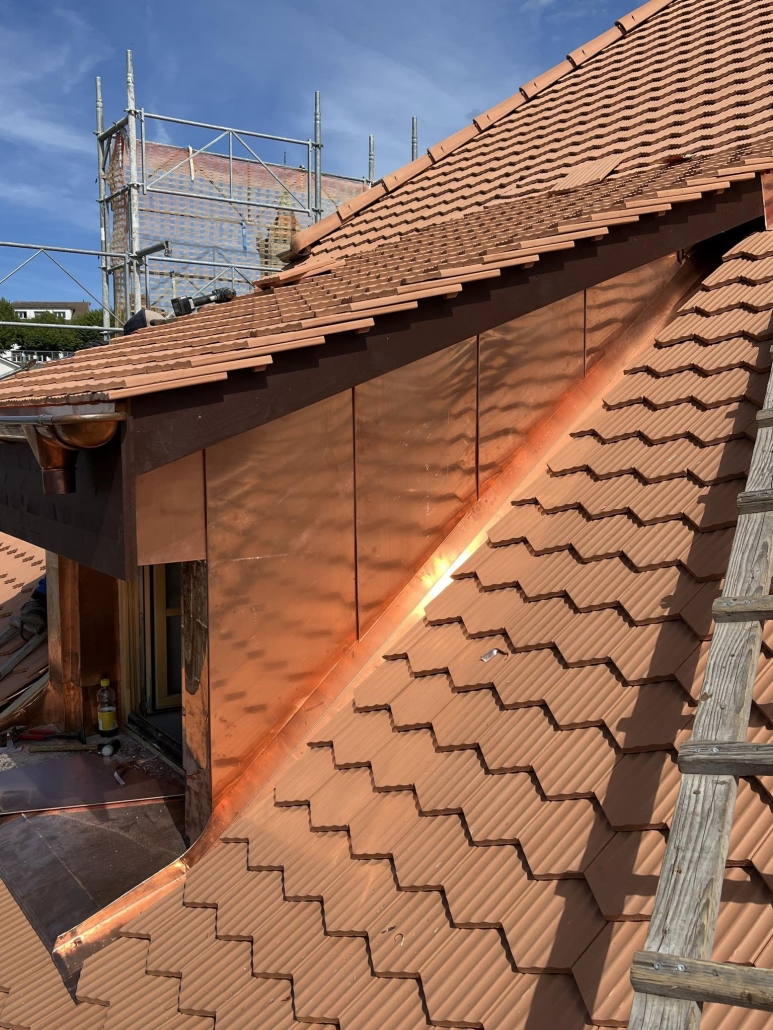 Façonnage d’un habillage complet en zinc d’un chien assis suite au vieillissement du shingle qui faisait l’étanchéité jusqu’à présent....