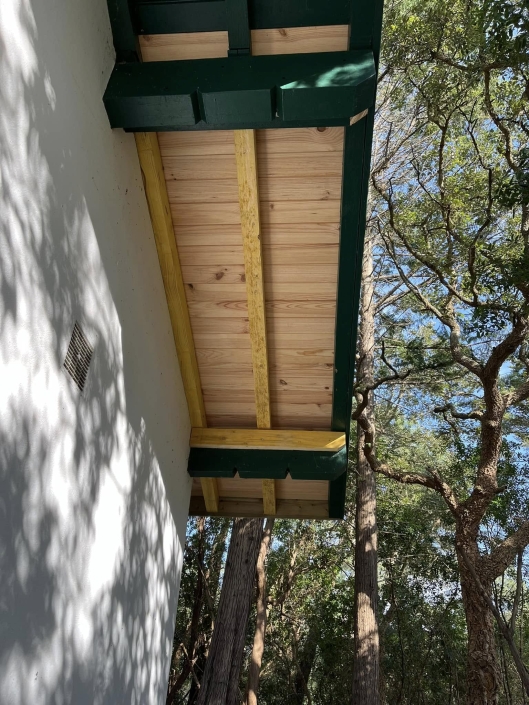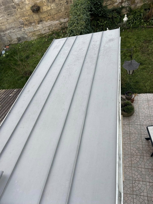 Reprise complète des rives à sec par la création de rives en zinc en couloir avec main courante , puis changement du faîtage , de certains lambris pvc percés pour terminer par la pose de gouttières en aluminium....
