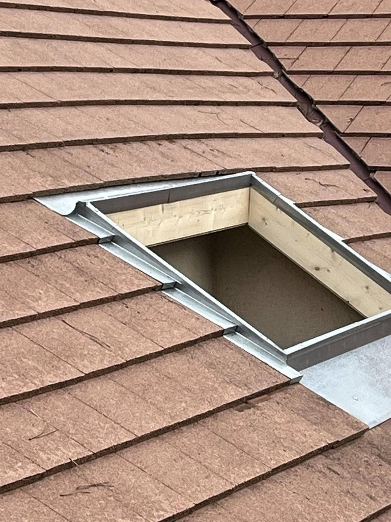 Avant / après d une reprise charpente autour de la lucarne puits de lumière avec changement de bandeau en bois + entourage en zinc à noquets sur le golf de Pessac 33600...