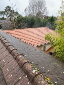 Traitement de toiture sur tuiles en terre cuite avec les produits Technichem sur la commune de Mourenx 64150....