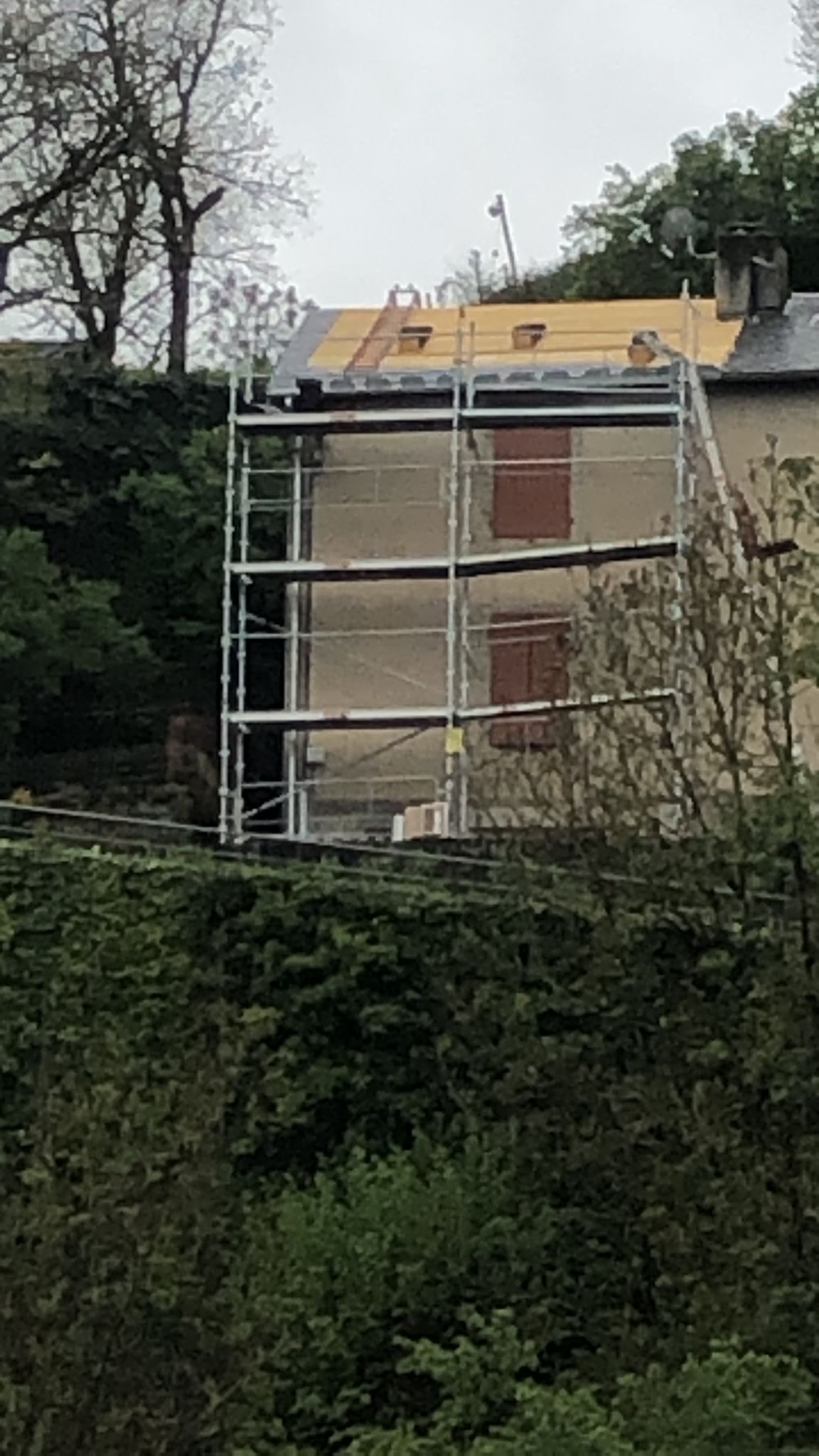 - Un échafaudage adapté au relief et à la hauteur du bâtiment a été installé, garantissant sécurité et efficacité pour nos équipes.