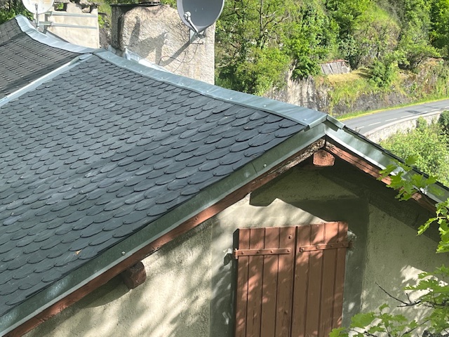 Grâce à l’intervention de nos techniciens qualifiés, les anciennes ardoises de lauze ont été remplacées par de l’ardoise naturelle, avec des finitions en zinc pour les bandeaux et les gouttières. Ce chantier illustre parfaitement l’expertise et le soin apporté à chaque étape, pour un résultat à la fois esthétique et durable.