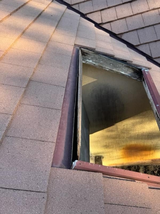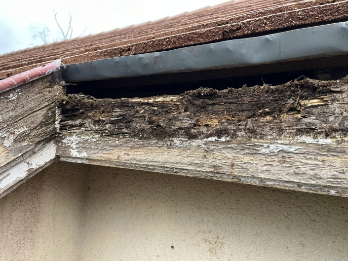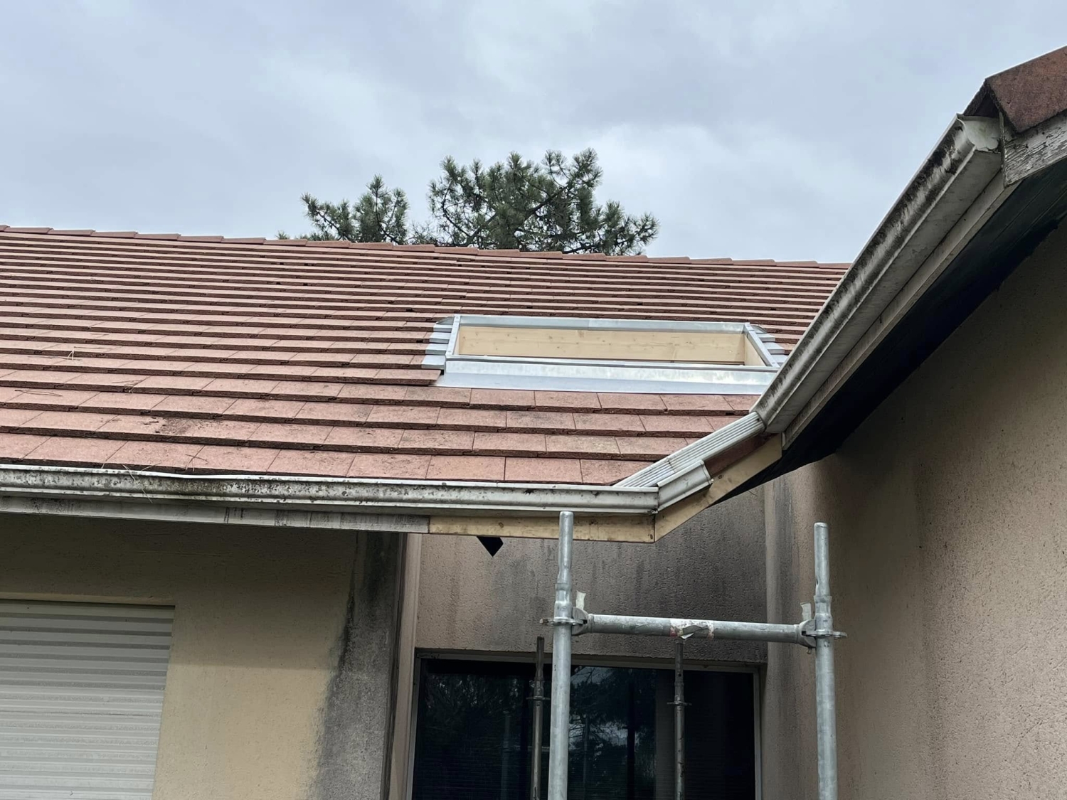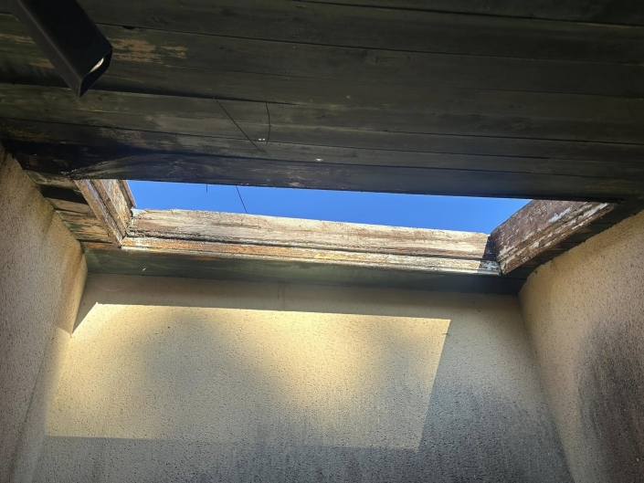 Avant / après d une reprise charpente autour de la lucarne puits de lumière avec changement de bandeau en bois + entourage en zinc à noquets sur le golf de Pessac 33600