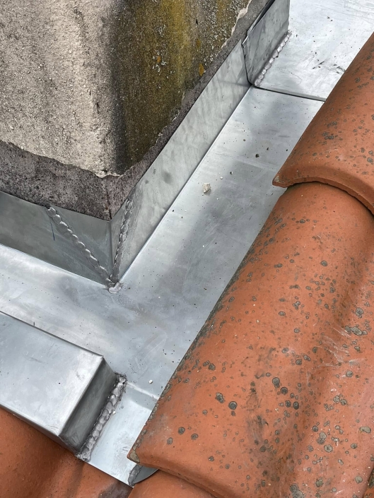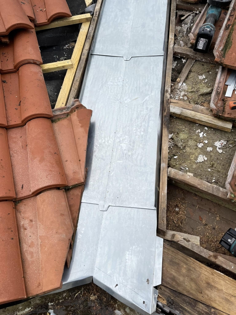 Réalisation sur mesure d une noue en zinc avec changement de la fonçure en bois ainsi qu un entourage de cheminée en zinc dans les landes à 40100 Dax.