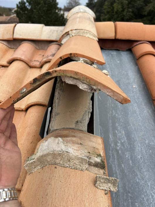 solines, ainsi que des tuiles faîtières au mortier qui ne tenaient pas